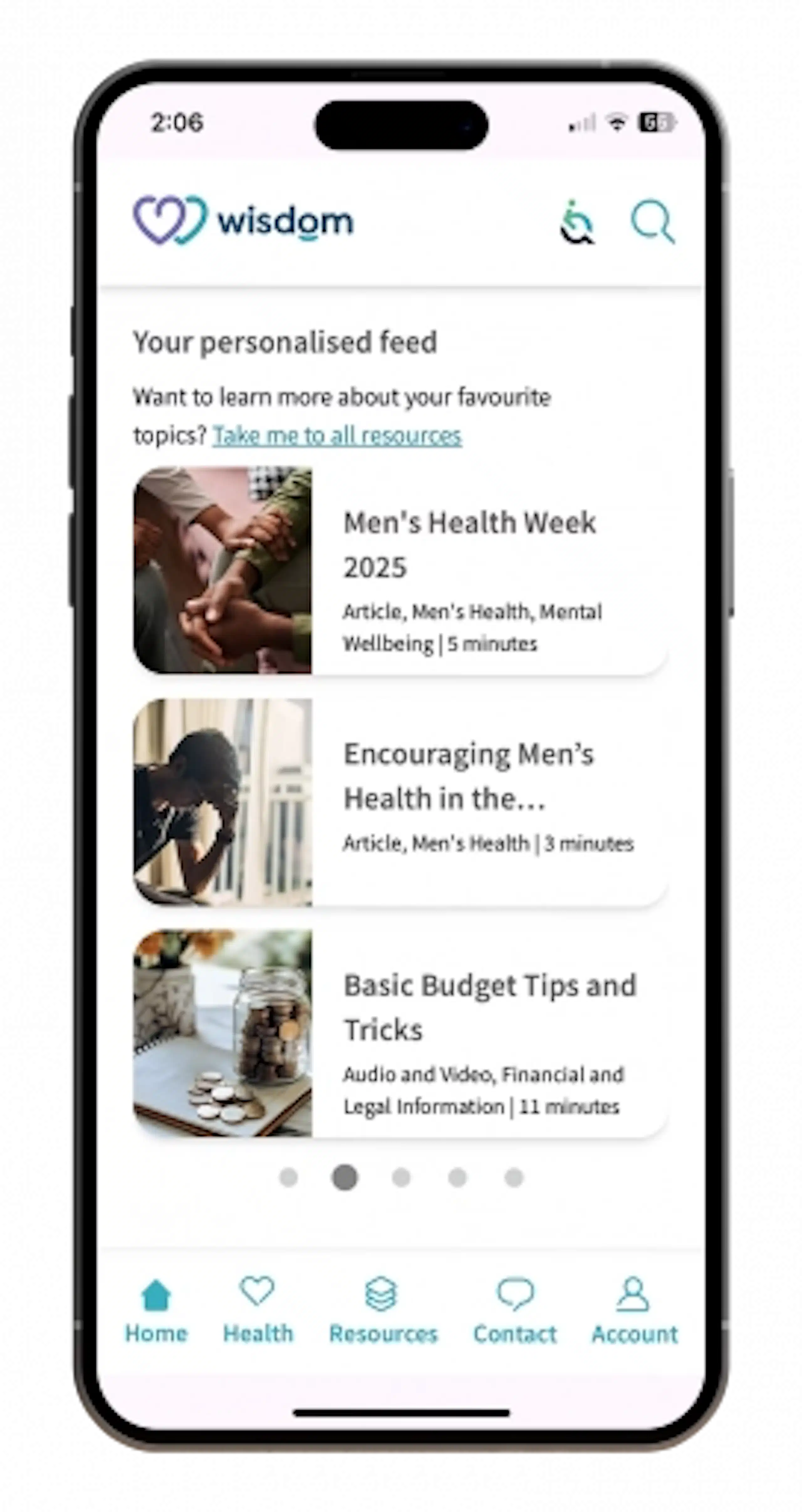 Log-in to the Wisdom App to access your 24/7, 365 confidential helpline number and a range of features including: